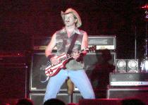| Wow!. The Nuge is as fiery as ever. Hasn't lost one inch of his incendiary guitar attack. Louder than hell! Our ears were ringing from the back of the amphitheater. He covered all his great tunes, including Cat Scratch Fever in his finale. Raw Dogs Warhogs was ballsy, loud and totally Nugent. Opening with a rendition of the Star Spangled Banner, Ted blended in his right-winged politics, taking shots at everyone! Joe Walsh was a bit more subdued, but not much. He did allow my eardrums to heal, a few decibels lower than Ted. We heard something new, something old. Opening with "Seems To me," he covered quite a bit of ground. Bowing to Ted as the opening act, he went into a solo acoustical number, then returned to peform his slide guitar work, cranking up the volume. Renditions of "Rocky Mountain Way" and "Lifes' Been Good," he indulged the crowd with an extended encore, remaining on stage about 20 minutes overtime. Check out the great concert action below. |